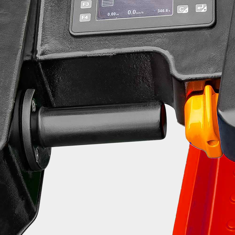 ระบบตรวจจับการใช้งานมือซ้ายและมือขวา พร้อมแป้นเหยียบด้านความปลอดภัย ช่วยให้มั่นใจว่าผู้ควบคุมอยู่ในตำแหน่งการทำงานที่ถูกต้อง สำหรับอุปกรณ์มาตรฐาน ได้ติดตั้งเซ็นเซอร์สวิตช์ตรวจจับการเอียงและสวิตช์ตรวจจับราวกั้นประตู เพื่อเพิ่มความปลอดภัยในการใช้งาน ความเร็วในการขับเคลื่อนจะสัมพันธ์กับความสูงในการยก โดยยิ่งยกสูงมากเท่าใด ความเร็วในการขับจะลดลง และอัตราเร่งก็จะลดลงตามไปด้วย