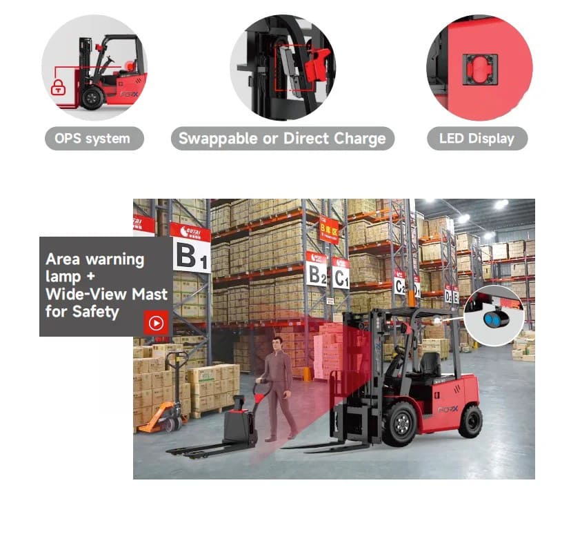 ด้วยระบบสลับแบตเตอรี่ด้านข้าง (Lateral-swap battery system) รถรุ่นนี้จึงโดดเด่นเป็นพิเศษสำหรับการทำงานหลายกะ (Multi-shift) เช่น ศูนย์กระจายสินค้าขนาดใหญ่ โรงงานผลิต และอุตสาหกรรมเครื่องดื่ม ที่ต้องการการทำงานต่อเนื่องตลอด 24 ชั่วโมง 7 วัน โดยไม่มีช่วงหยุดชะงัก (Downtime)