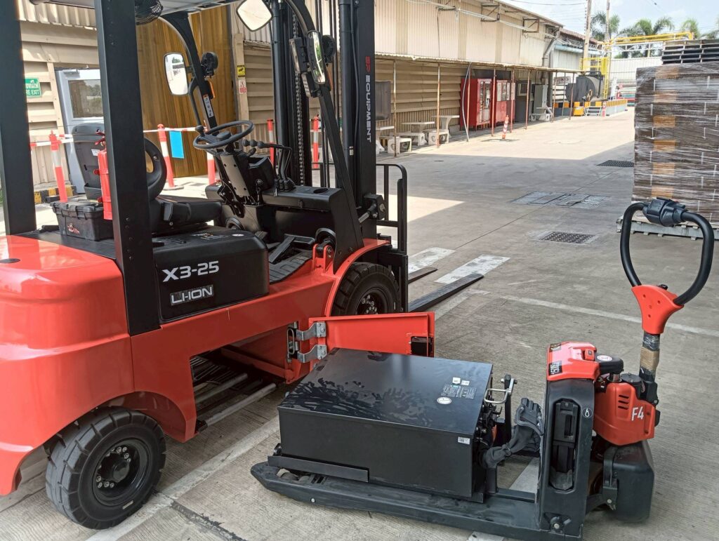 ต่างจากโฟล์คลิฟท์ดีเซลหรือแก๊ส LPG รถโฟล์คลิฟท์ไฟฟ้าไม่ปล่อยไอเสียและทำงานเงียบกว่า ทำให้บรรยากาศการทำงานดีขึ้น ลดความเครียด และสอดคล้องกับมาตรการสิ่งแวดล้อม