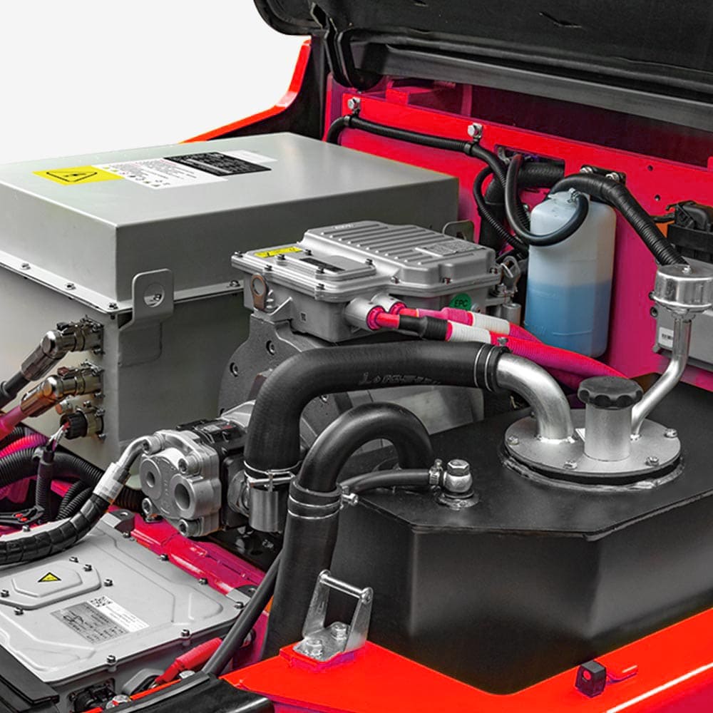 ทั้งระบบขับเคลื่อนและระบบควบคุมการทำงานใช้มอเตอร์ซิงโครนัสแม่เหล็กถาวรระดับยานยนต์ พร้อมชุดเกียร์อัตราทดความเร็วสูง ให้ความเร็วในการขับเคลื่อน ความสามารถในการไต่ทางลาด และสมรรถนะด้านอัตราเร่งที่ทัดเทียมกับรถโฟล์คลิฟท์เครื่องยนต์สันดาปภายใน ขณะเดียวกันยังมีสมรรถนะด้านสิ่งแวดล้อมที่ดีกว่าอย่างชัดเจน